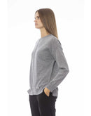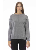 Elevate your style quotient with Baldinini Trend’s crew neck sweater, where elegance meets edge. Impeccably crafted in Italy, this piece is a harmonious blend of viscose, marabou, polyamide, wool, and a touch of cashmere, offering unmatchable comfort with a luxurious feel. Featuring a distinguished central seam, ribbed details, and side slits for a contemporary twist. The iconic Baldinini Trend monogram in metal adds an exclusive signature finish to this gray knit masterpiece. A must-have staple for those who dress to impress!