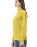 Wrap yourself in the epitome of Italian luxury with this sumptuous Baldinini Trend turtleneck sweater. Featuring long sleeves and a finely ribbed collar, cuffs, and bottom, this piece isn’t just about warmth, but also about making a statement. A chic, yellow hue plays canvas to the standout Baldinini Trend metal monogram, ensuring your style speaks volumes in any setting. Perfect for those bold enough to embody the brand’s trendy essence.