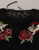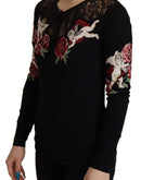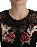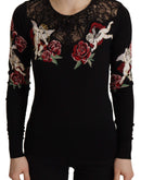 Dolce & Gabbana Black Lace Angel Roses Cardigan Sweater