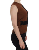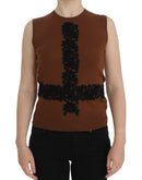 Dolce & Gabbana Brown Wool Black Lace Vest Sweater Top