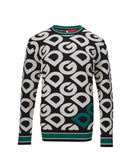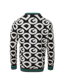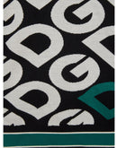 Dolce & Gabbana logo sweater in black with allover logo in white. Contrasting green/black elastic knit crew neck, cuffs, waistband. Article Sku: FX469T JAVPX. Composition: 98% Wool, 2% Polyester-Sku inside:23NOV91