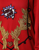 Dolce & Gabbana Red Cotton Queen Sequined Pullover Sweater