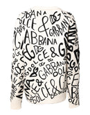 Dolce & Gabbana White Black Logo Print Women Pullover Sweater