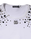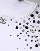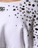 Dolce & Gabbana White Embellished Long Sleeve Cropped Sweater