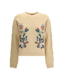 The Etro Sweater combines comfort and sophistication with a distinctive touch. Crafted with a ribbed crew neck, hem and cuffs, it features a classic structure enhanced by floral embroidery sewn onto the front, which gives the garment a delicate and refined elegance, perfectly in line with the poetic aesthetic of the brand.