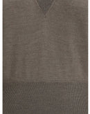 This long-sleeve Sweater features a deep V-neck and is crafted from lightweight Grey Cashmere and Silk knit. Finished with a high hem and ribbed cuffs, it combines softness, comfort, and refined elegance, perfect for sophisticated, contemporary looks
