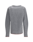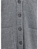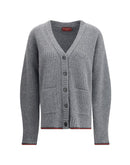 The Wool Cardigan by Gucci embodies timeless elegance with its ribbed knit construction and refined V-neckline. Dropped shoulders and long sleeves create a relaxed silhouette, while the maison’s iconic green and red Web trim highlights the cuffs and hem. Finished with a button closure, this versatile piece seamlessly blends sophistication with everyday wear.