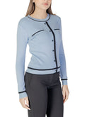 The Morgan De Toi women’s knitwear, model 251-MJUANI, is a refined and elegant sweater designed to add a chic touch to your wardrobe. Crafted from a blend of 70% viscose and 30% polyamide, it ensures a soft and comfortable fit, perfect for both everyday wear and more formal occasions. The design features a front button closure and contrasting trim along the edges, cuffs, and faux chest pockets, giving it a sophisticated and modern look. Clean lines and a feminine cut enhance the silhouette, making this sweater versatile and easy to pair with both tailored trousers and casual jeans.