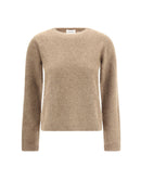 The crew neck Sweater by P.A.R.O.S.H. is an essential garment with a clean, refined design. Crafted with ribbed trim on the collar, hem and cuffs, it offers a comfortable fit and timeless style, perfect for completing your everyday wardrobe with a touch of understated elegance.
