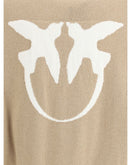 The Pinko Logo Sweater is a casual piece with a bold character. Crafted with a ribbed crew neck, hem and cuffs, it is enriched by the iconic jacquard signature on the front and a discreet logo on the back, for a recognizable and contemporary look.