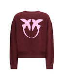 The Pinko Logo Sweater is a casual piece with a bold character. Crafted with a ribbed crew neck, hem and cuffs, it is enriched by the iconic jacquard signature on the front and a discreet logo on the back, for a recognizable and contemporary look.