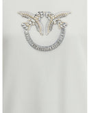 Pinko’s embroidered logo Sweatshirt combines comfort and style with precious details. Featuring a ribbed crew neck, cuffs and hem, the logo on the front is embellished with pearls and rhinestones, giving the garment a touch of elegance and shine.