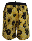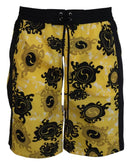 Dsquared² Yellow Black Printed Nylon Beachwear Shorts Swimwear