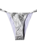 Dolce & Gabbana Silver Polyester Beachwear Bikini Bottom Swimwear