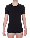 Step into the world where classic meets contemporary with the Bikkembergs Bi-pack V-neck T-shirt. This twin-pack offers not just one, but two opportunities to elevate your wardrobe with the brand’s sleek aesthetic. Crafted from a superb blend of cotton and elastane, these tees promise both comfort and a flattering fit. The timeless black hue ensures versatility and effortless pairing with any outfit, making them an essential duo for the style-conscious gent.