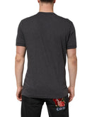 Dolce & Gabbana Black Charcoal DG Logo V-Neck Men T-shirt