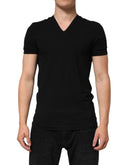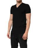Dolce & Gabbana Black Cotton Slim Fit Men V-Neck Shirt T-shirt