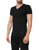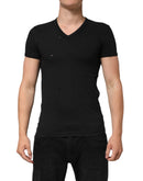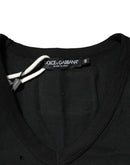 Dolce & Gabbana Black Cotton Tattered Logo V-Neck Men T-shirt