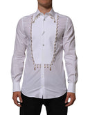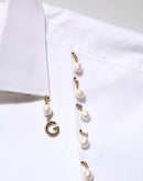 Dolce & Gabbana White Cotton DG Logo Pearl GOLD Formal Shirt