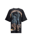 PDF Channel’s The Boy Black Gangs T-Shirt is distinguished by its oversized style that provides a comfortable, modern fit. Made with a crew neck and short sleeves, it is perfect for a casual, contemporary look. The embossed screen print on both the front and back adds a graphic and distinctive detail, making this garment a must-have for those who like to express personality even with simplicity.