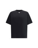 Prada’s cotton T-Shirt features a simple yet sophisticated design. The ribbed crew neck ensures a comfortable and classic fit, while the monochrome pattern maintains a clean and versatile look. The triangular plaque with the brand’s iconic contrasting monogram applied to the front adds a distinctive and recognizable detail, emphasizing the brand’s elegance.