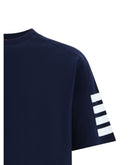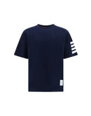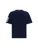 The Thom Browne Cotton T-Shirt is an essential piece with a clean and distinctive design. Crafted from soft cotton, it features a ribbed crew neck and the iconic horizontal stripes on the left sleeve. The monogram patch on the front adds a touch of recognition.