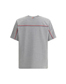 Thom Browne’s oversized T-Shirt combines an essential aesthetic with distinctive details. Made with a ribbed crew neck, it features two side slits that add comfort and movement. An iconic patch stands out on the front, while colorful bands on the back lend an unmistakable touch, discreetly signing off the brand’s style.