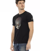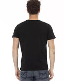 Experience the epitome of casual sophistication with Trussardi Action’s latest creation. This short-sleeve, black T-shirt is more than just an everyday garment; it’s a bold statement of style. With a chic round neck and eye-catching front print, it captures the essence of Trussardi Action’s commitment to contemporary fashion. Perfect for the trendsetter seeking comfort without compromising on trendiness.