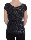 Cavalli Gray Leopard Modal T-Shirt Blouse Top