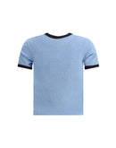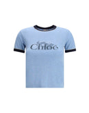 The light blue cotton T-shirt blends essential lines with distinctive details. A ribbed crewneck and short sleeves finished with contrasting black edges give the piece a modern, graphic appeal. The printed Chloé logo on the chest adds an iconic and recognizable touch. Fresh and versatile, it’s the perfect choice to complete everyday looks with simplicity and elegance.