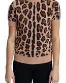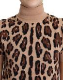 Dolce & Gabbana Beige Leopard Print Virgin Wool Turtleneck Top