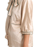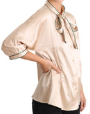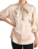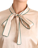 Dolce & Gabbana Beige Ribbon Silk Stretch Top Blouse