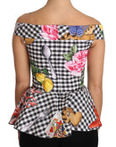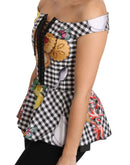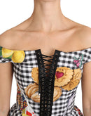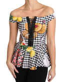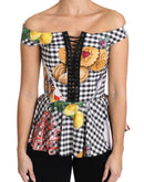Dolce & Gabbana Black and White Corset Blouse Sicily Lemon Check Top