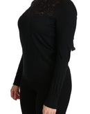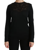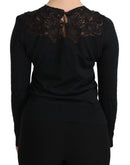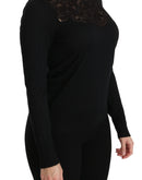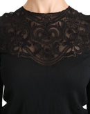 Dolce & Gabbana Black Silk Lace Crew Neck Long Sleeve Blouse