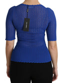 Dolce & Gabbana Blue See Through Round Neck Top Viscose Blouse