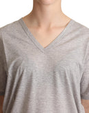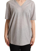 Dolce & Gabbana Gray Solid 100% Cotton V-neck Top T-shirt