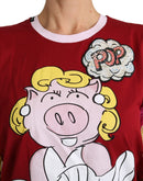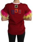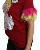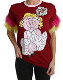 Dolce & Gabbana Red Pig Print Feather Sleeves T-shirt Top