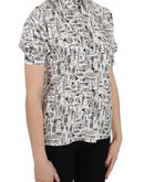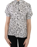 Dolce & Gabbana Trumpet Print Button Front Silk Top Blouse