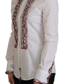 Dolce & Gabbana White Lace Long Sleeves Ruffle Collar Top