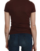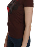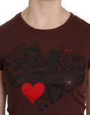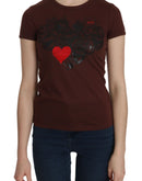 Exte Brown Heart Print Crew Neck T-shirt Short Sleeve Blouse