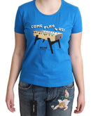 Moschino Blue Cotton Come Play 4 Us Print T-shirt