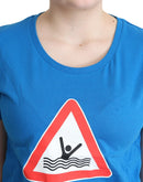 Moschino Blue Cotton Swim Graphic Triangle T-shirt