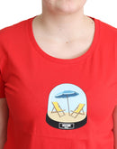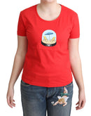 Moschino Red Printed Cotton Short Sleeves Tops Blouse T-shirt