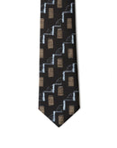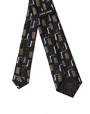 Black silk tie by Giorgio Armani featuring multicolor geometric patterns.