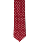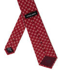Giorgio Armani Jacquard silk tie with a symmetrical pattern on a red background.