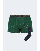 The Tommy Hilfiger TRUNK & SOCK SET UM0UM01996 is the ideal choice for those seeking both comfort and style in their underwear. This practical gift box includes coordinated trunk boxers and socks, both featuring an elegant graphic pattern and iconic brand details. Made from soft jersey fabric composed of 95% cotton and 5% elastane/lycra, they offer a stretchy, comfortable fit that adapts perfectly to your body. The trunk showcases the classic Tommy Hilfiger logo waistband, while the socks are designed to match for a refined, cohesive look. Perfect as a gift thanks to the festive packaging, this set is ideal for anyone who appreciates high-quality underwear from a trusted and trendy brand.