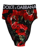 Dolce & Gabbana Black Floral Print High Waist Panty Underwear