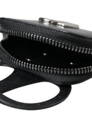 Dolce & Gabbana Black Calfskin Leather DG Logo Coin Purse Lanyard Wallet