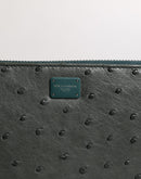 Dolce & Gabbana Green Ostrich Logo Plaque Zip Around Continental Wallet