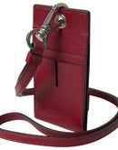 Dolce & Gabbana Red Leather Lanyard Logo Slim Card Holder Men Wallet